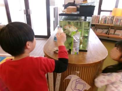 つくった雪だるまさんを園内の好きな場所に飾ってあげようと園内をウロウロ…。友達と一緒にあっちにしようか、こっちにしようか、中々決まりません。「コイさん!これ僕がつくった雪だるまさんやで」と幼稚園の鯉さんにも見せてあげていました👀✨
