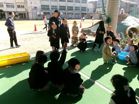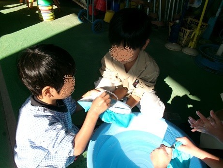 今日は1年4組の友達と一緒に、洗濯ごっこを楽しみました♪