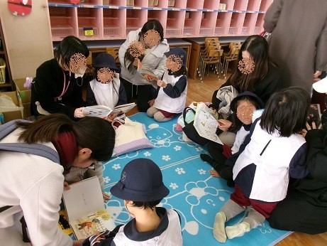 おうちの人の膝に乗りながら、絵本を一緒に覗き込みながらなど、おうちの人が選んでくれた絵本を思い思いに読んでもらいました。親子でふれあう素敵な時間になりました♪