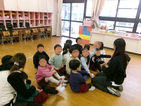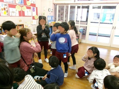 絵本のお話をもとに、クラスのみんなでイメージを膨らませて遊び始めました!