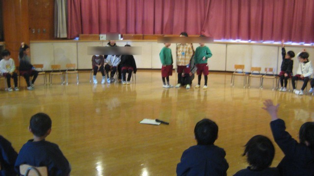 今日は楽器を使ったり、なぞなぞをしたり、お店屋さんにあるもの・ないものを見つけたりして遊びました。