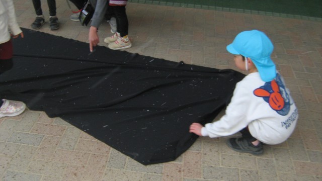 降ってきた雪を黒い布で集めてみました。