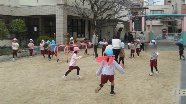 園庭ではなかよくおにごっこやしっぽとりをして遊びました。