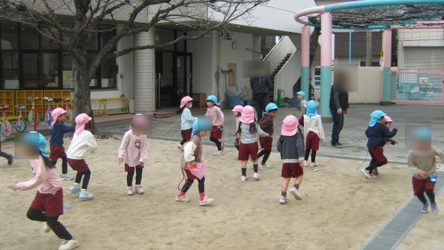 最近園庭でなかよく遊ぶことが増えて、今日もみんな一緒になって楽しい時間を過ごしています。