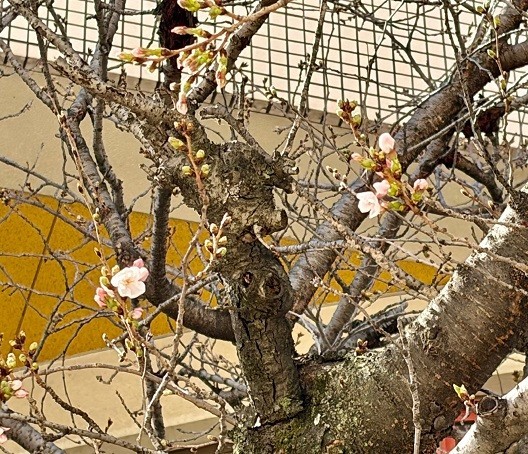 朝、1輪だけ咲いていた桜の花が、ぽかぽかあたたかくなり始めたお昼ごろ、5輪咲いていました✨