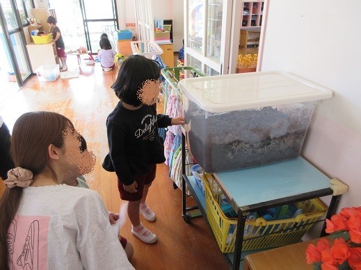 1年生になった前の5歳児から受け継いだ、カブトムシの幼虫さんたち。