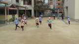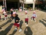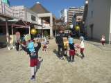 うさぎ組さんときりん組さんの子どもたちがいっしょになって鬼ごっこをしていました。...
