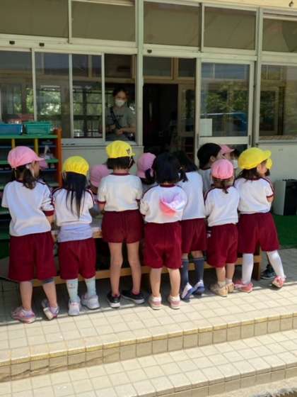 テラスで小麦粉粘土を出すと、黄組さんも集まってきましたよ…