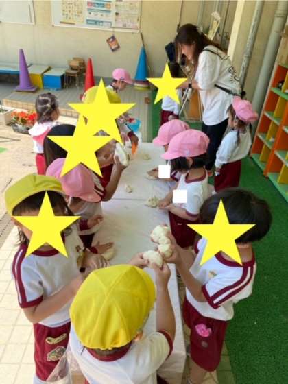 3歳児桃組は、先日から小麦粉粘土で遊んでいます。