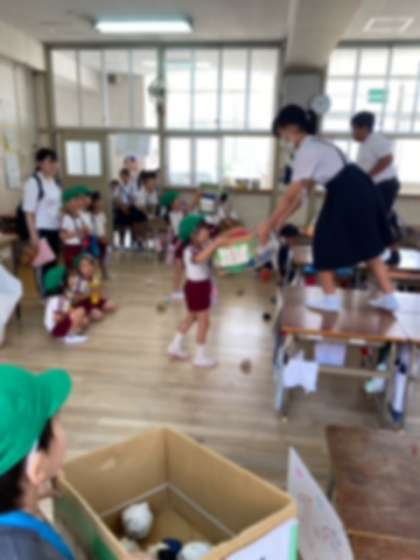 その他、小学生が投げる風船やボールを段ボール箱で受け止める「段ボールキャッチ」や、箱の中のものを触って何が入っているか言い当てる「ブラックボックス」的に向かってボールを投げる「的当て」など、いろいろな遊びをしました。