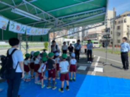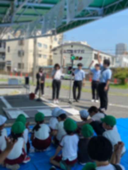 ご挨拶した後、信号の見方や、横断歩道の渡り方を、実際にして見せてくださいました。
