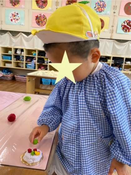 美味しそうなケーキをつくっている子ども…