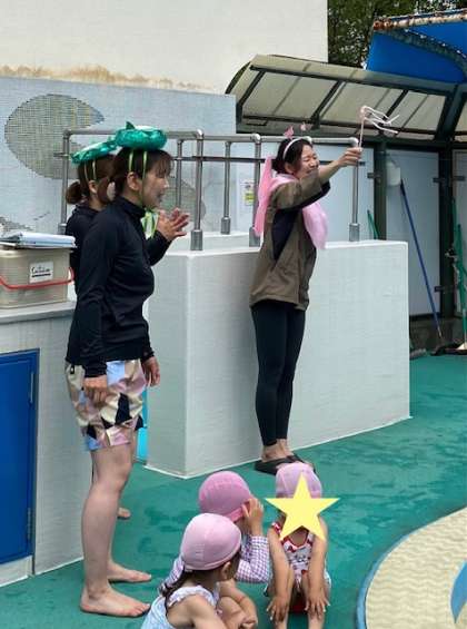 子どもたちは、楽しみながらプールでのお約束を学びました。