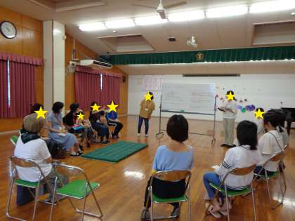 元大阪市立幼稚園養護教諭を定年退職後、本園の預かり指導員をされていた先生や、園長先生と一緒に、子育ての悩みを中心に情報交換しました。