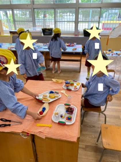 レストランみたい 公開日 2024/06/28 更新日 2024/06/28 幼稚園日記 カラフルな画用紙でつくった紙粘土で、ご馳走づくりをしている子どもたち。 保育室に入ると、とてもいい顔で「ここに座って」と出迎えてくれました。 いいね(0)