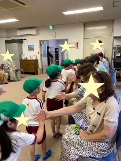 子どもたちは自分でつくった傘の飾りをプレゼントしました。