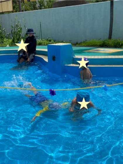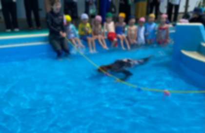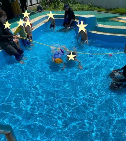 プールから上がるとき、ロープをくぐってもいいし、またいでも、跳んでもいいようにしました。