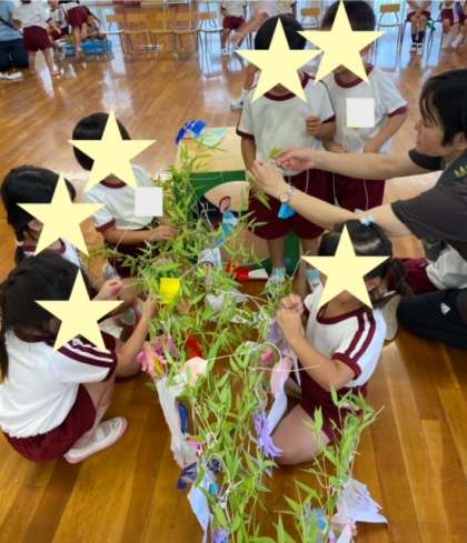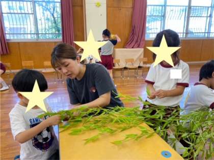 大笹に飾りをつけました。