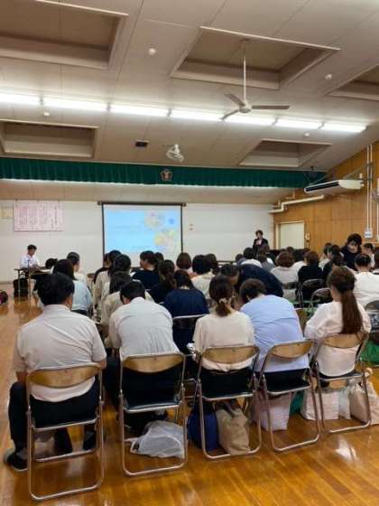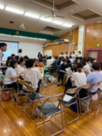 15園の先生方に保育を見てもらった後、5つの分科会で保育の内容について話し合います。