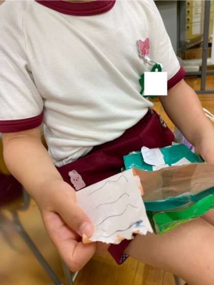 「何かいいものを持っているね。今日は何をつくって来たの?」と聞くと、「ピッピッてするやつで(レジで)ここからこんなのも(レシートも)出てくるねん」と説明してくれました。