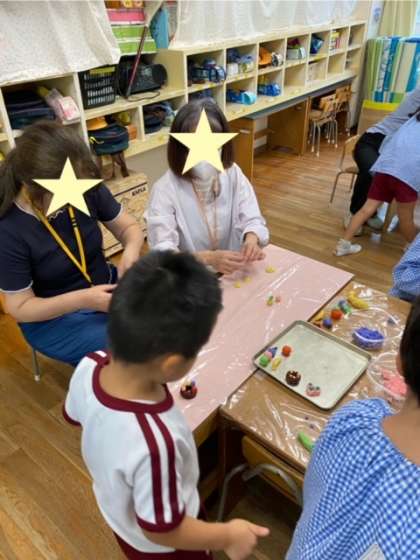 遊ぼうデー3 公開日 2024/07/12 更新日 2024/07/12 幼稚園日記 4歳児黄組は、色画用紙でつくった紙粘土で、ドーナツやケーキなど、いろいろなスイーツをつくりました。 地域の方はお花の形や三色団子をつくってくださいました。 ちょっと食べたくなってしまいましたね… いいね(0)