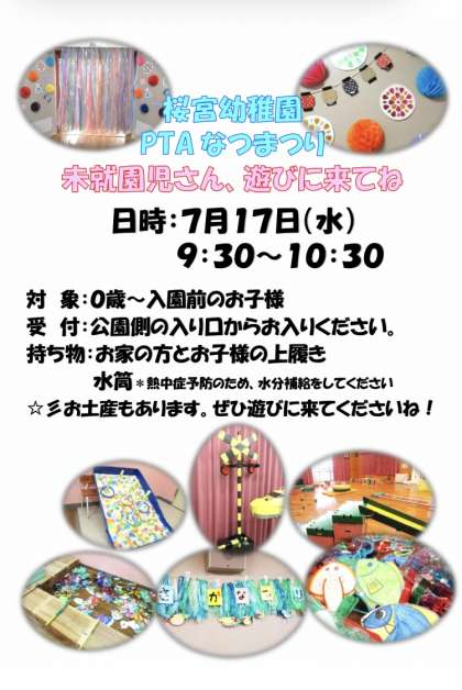 未就園児さんも、PTA夏まつりに遊びに来てね!!
