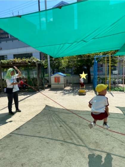 昨年度、年長組の友達の姿を見て憧れて、長縄跳びの仲間に入れてもらっていたそうです。