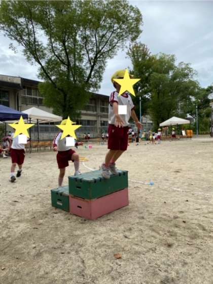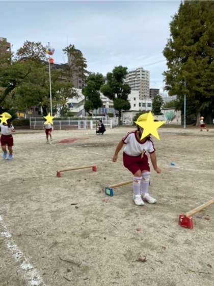 4歳児黄組は、カエルのオリンピック、ケロリンピックでカエルになって遊びます。