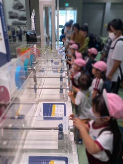 園外保育(京都鉄道博物館)4 公開日 2024/10/15 更新日 2024/10/15 幼稚園日記 電車の運転席に座ってハンドルを操作したり、車輪の滑車を回したり… 触れて楽しめるところがいっぱいで、順番に並んで遊んでいました。 いいね(0)