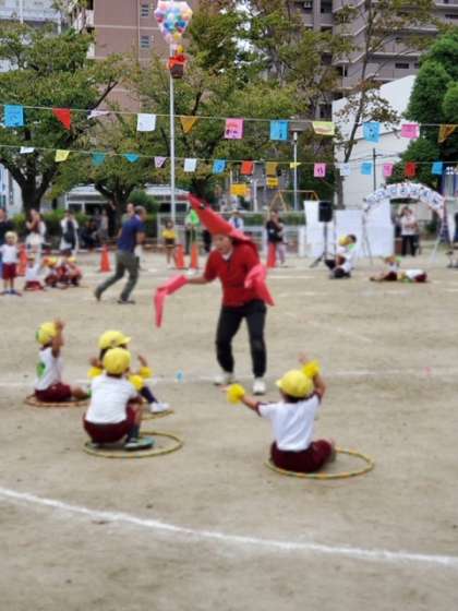 ケロリンピックでは、あぶくに見立てたフープで縄跳びのように跳んだり、フープを腰で回したりもしました。