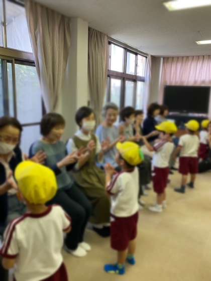 世代間交流 公開日 2024/10/25 更新日 2024/10/25 幼稚園日記 4歳児黄組は、福祉会館で地域の皆さんと交流しました。 おいもゴロゴロの歌を聞いてもらって沢山の拍手をいただきました。 また、焼き芋ジャンケンを一緒にしてもらったり、肩叩きをして喜んでもらったりしました。 子どもたちからはメダルをプレゼント。 地域の方からは、動くハロウィンのお化けをいただいて、子どもたちは大喜びでした!! いいね(0)