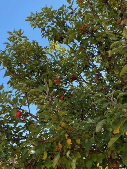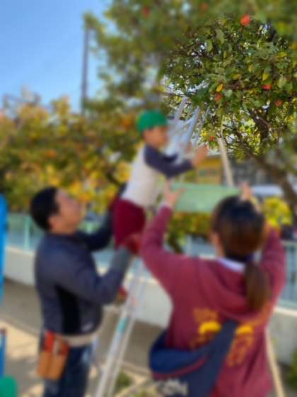 幼稚園の園庭で、ひめりんごを収穫しました。