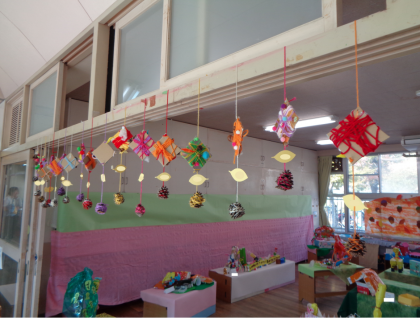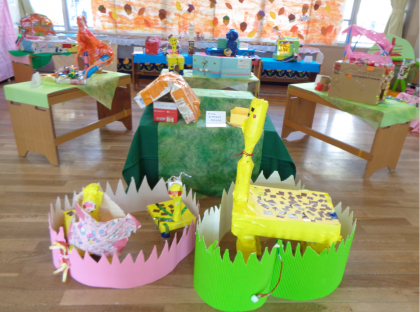 こどもてんらんかい4 公開日 2024/11/22 更新日 2024/11/22 幼稚園日記 4歳児黄組の保育室です。 キリンさんが沢山いました。友達のキリンを見て、つくってみようと思ったのでしょうか・・・ 友達を真似ることは大切なことです。想像力は何もないところから生まれません。様々な経験から想像力が育まれます。真似ることも大切な経験の一つです。「真似る」→「学ぶ」なのです。よく見ると同じように見えるキリンも個性がありました。 自然物を使った作品も、みんな素敵でした。 いいね(0)