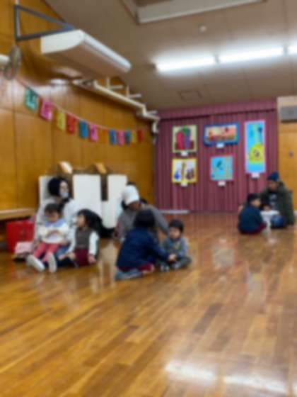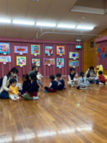 「むしむしじゃんけんぽん」では、小さいお友達の近くに行って、一緒にじゃんけんぽんをして遊びました。