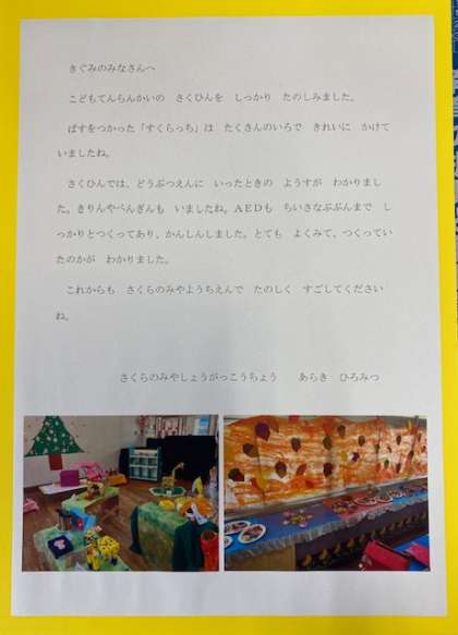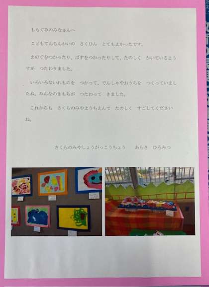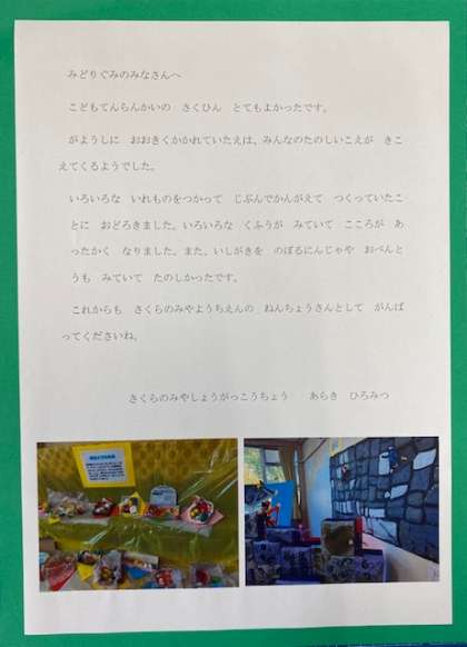 校長先生からのお手紙は、各組のクラスカラーの台紙がついている写真入りの心温まるお手紙でした。