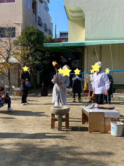 今年は、保護者にもちつきを参加していただけるようにしました。
