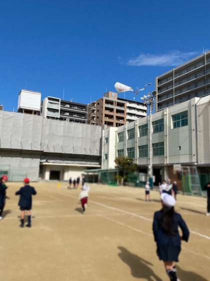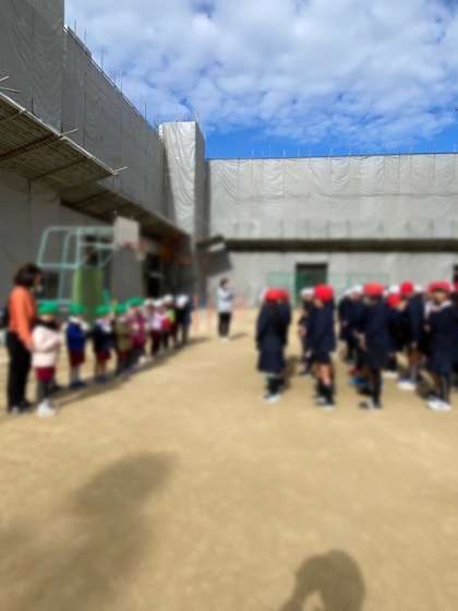 5歳児年長緑組は、5年生がたこあげをお手伝いしてくれました。