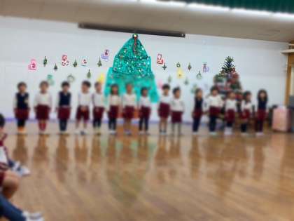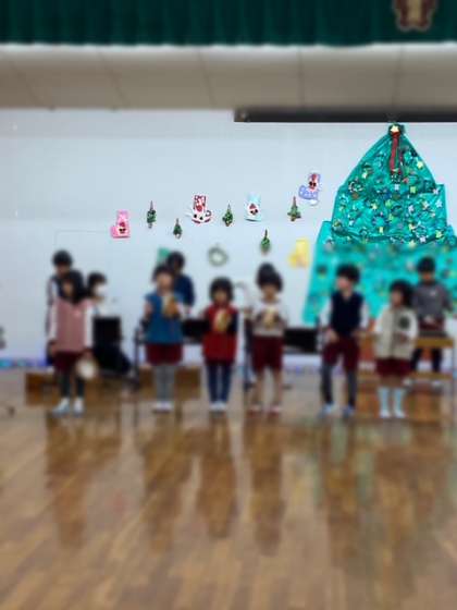すぐに帰ってしまいましたが、サンタさんに聞こえるようにと、各クラスの子どもたちが、ペープサートをしたり歌や合奏でかわいい音色を響かせたりしました。