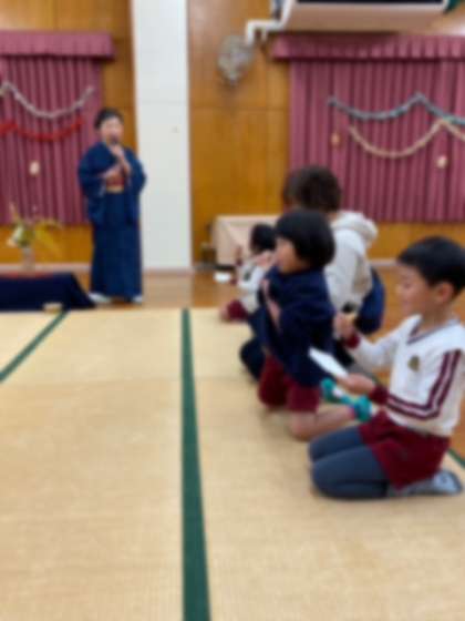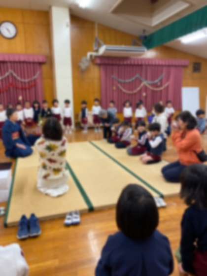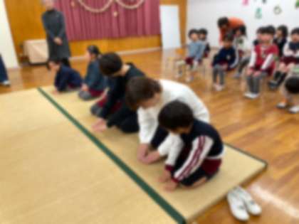 年長緑組の子どもたちが、お茶の先生から、靴の脱ぎ方、お辞儀の仕方、お菓子やお茶の嗜み方など、丁寧にご指導いただきました。