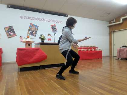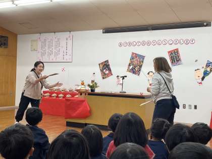 始業式では、先生達が「はねつき」や「こままわし」を披露してくれて、子どもたちから「頑張れ〜」と声援が上がりました。