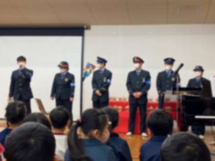 始業式の後、JR京橋駅と周辺駅の駅員さん方が来園してくださり、園児と保護者に向けて、安全指導をしてくださいました。