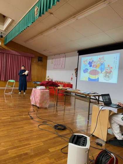 さいとうしのぶさん作の絵本を、プロジェクターで映し出して、沢山読み聞かせてもらいました。