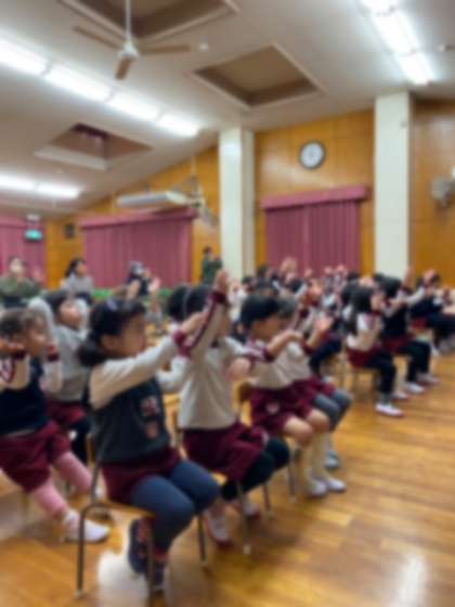 子どもたちは歌ったり体を動かしたりしながら、絵本のお話を楽しみました。
