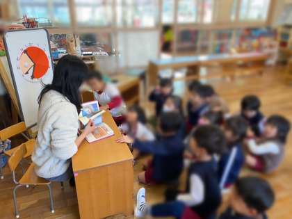 最初に、さいとうしのぶさんの眠育絵本「ねこすけくんがねているあいだに」を読んでもらいました。