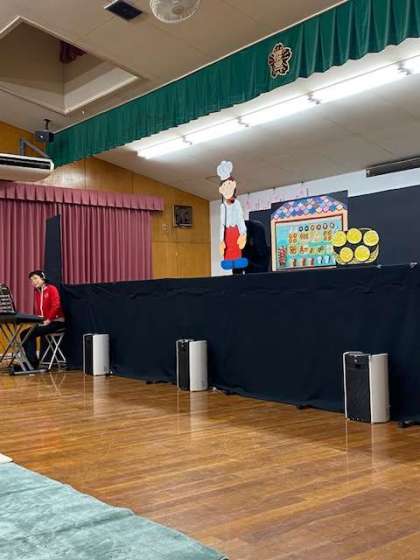 パン屋さんのペープサートは、美味しそうなパンが並び、子どもたちは食い入るように見ていました。