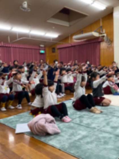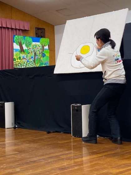 卵の中からいろいろなものが出て来ます。子どもたちが楽しくお話を聞くことができるよう、様々な工夫をされていました。