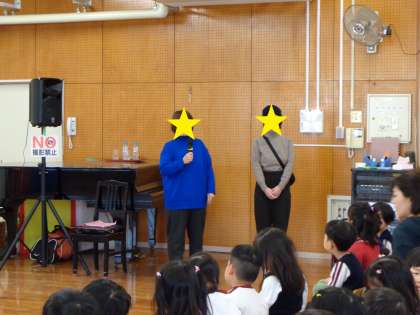 Mr.チョップリンさん 公開日 2025/01/22 更新日 2025/01/22 幼稚園日記 1月21日(火)PTA人権啓発・成人教育委員さんの主催で、Mr.チョップリンさんをお招きして、マジックショーが行われました。 マジックや腹話術、風船人間など、チョップリンさんの巧みな話術と共にテンポよく進められ、始めから最後まで、子どもたちも保護者の方も、みんなで大笑いしました。 いいね(0)