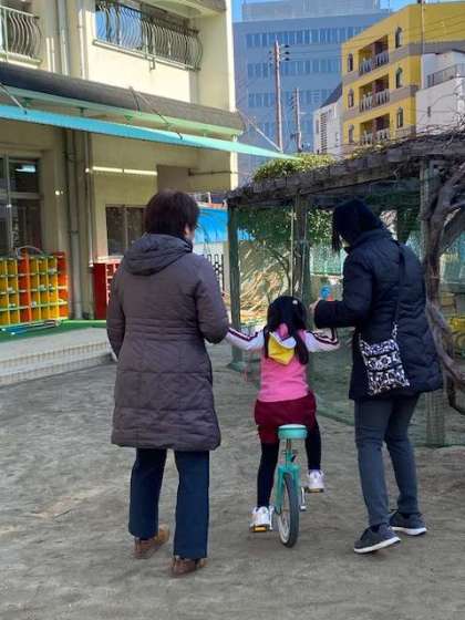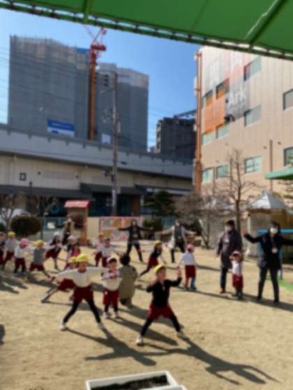 遊ぼうデー1 公開日 2025/02/14 更新日 2025/02/14 幼稚園日記 今日は遊ぼうデー。 年中黄組と年少桃組は、地域の方と一緒に、園庭で忍者の体操をしたり、好きな遊びをしたりしました。 手をつないで一輪車の補助をしてもらったり、長縄を回してもらったり… 地域の方の温かい励ましをいただいて、いつもより張り切っていろいろな遊びにチャレンジしていました。 いいね(0)