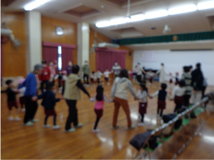 生活発表会で歌った「スキップ」の歌を地域の方に聴いてもらったり、一緒に「友達できちゃった」のふれあい遊びをしたりしました。