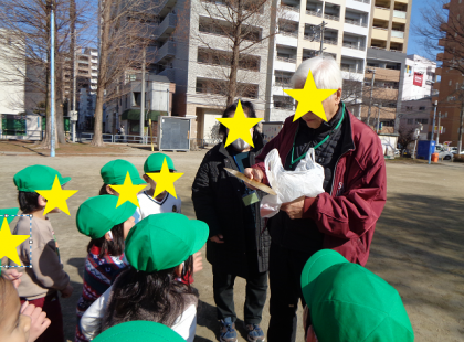 遊ぼうデー3 公開日 2025/02/14 更新日 2025/02/14 幼稚園日記 年長緑組は、お隣の公園で宝探しをして遊びました。地域の方が、お宝を公園のあちらこちらに隠してくださっていました。 大判小判や金の星や赤いハートがあちらこちらから出てきて、大盛り上がりの子どもたちでした。 いいね(0)